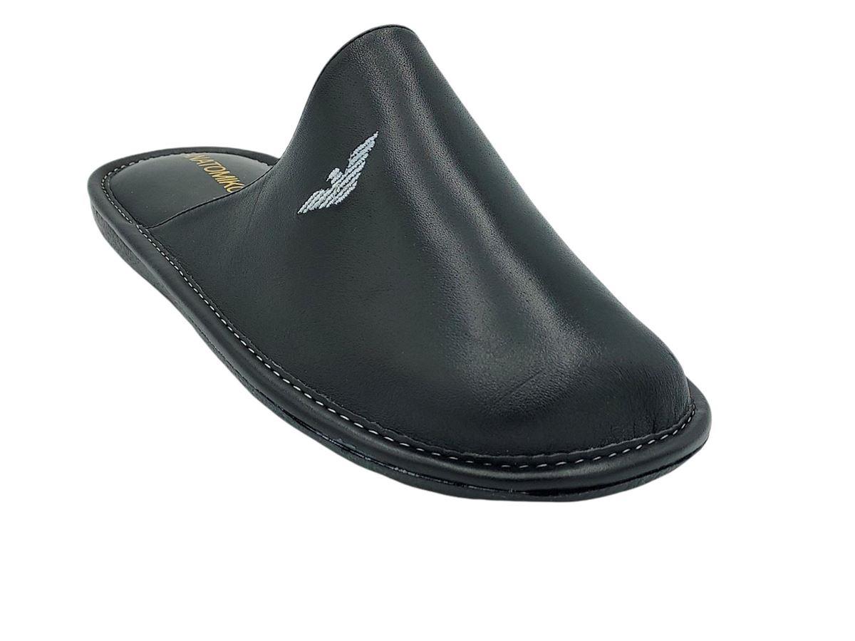 Ανδρική παντόφλα σπιτιού της εταιρείας KAPPA SHOES ελληνικής κατασκευής σε δύο χρώματα, μαύρο και μπλε, κατασκευασμένη εξολοκλήρου από γνήσιο δέρμα. Έχει ελαφριά και αντιολισθητική σόλα. Ο εσωτερικός πάτος είναι ανατομικός και πολύ μαλακός. Μια διαχρονική, ποιοτική παντόφλα που δεν θα θέλετε να τη βγάλετε από τα πόδια σας.
