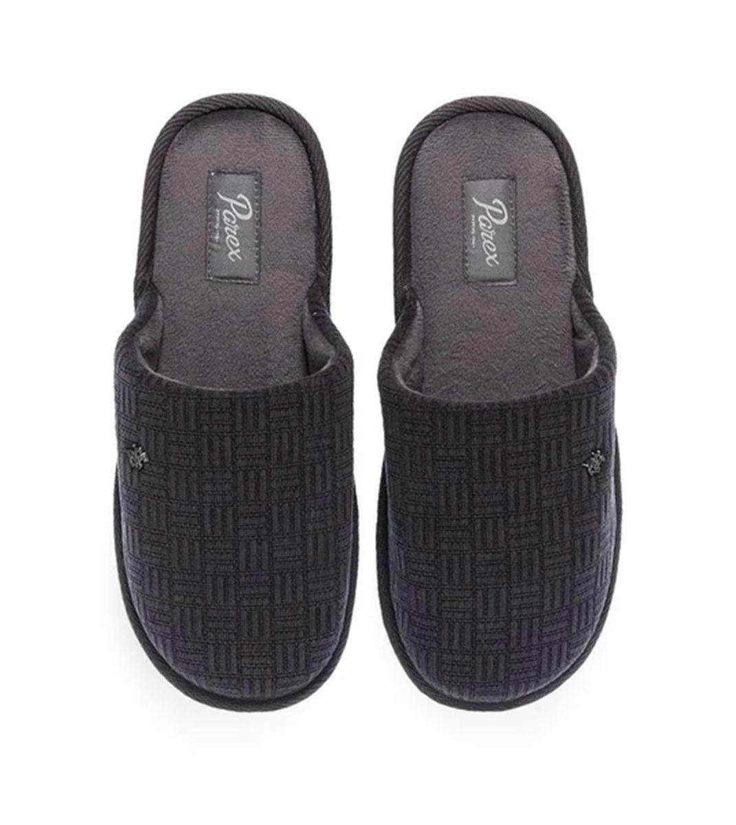 Ανδρικές παντόφλες σπιτιού της εταιρείας PAREX κατασκευασμένες εξολοκλήρου από ζεστό ύφασμα. Έχουν μαλακό πάτημα και η σόλα είναι ελαφριά, ελαστική και αντιολισθητική. Με ωραίο minimal σχέδιο αυτές οι παντόφλες θα σας προσφέρουν την ξεκούραση που αναζητάτε, όταν επιστρέφετε στο σπίτι.