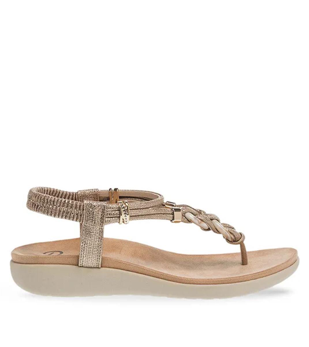 Γυναικεία σανδάλια της εταιρείας PAREX με δίχαλο, κοκκάλινα και μεταλλικά διακοσμητικά , πολύ μοντέρνα και άνετα, καθώς έχουν ανατομικό πέλμα. Έχουν λάστιχο στην φτέρνα για γρήγορη και εύκολη εφαρμογή. Είναι κατασκευασμένα εξωτερικά από μεταλλιζέ ύφασμα και το πατάκι είναι υφασμάτινο απορροφώντας τον ιδρώτα κι έτσι έχετε πιο σταθερό βάδισμα. Το πατάκι έχει αφρώδη επένδυση για μαλακό πάτημα. Η σόλα είναι αντιολισθητική και ελαστική με ύψος 2 εκ. μπροστά και 3 εκ. πίσω. Ιδανικά σανδάλια για να φορεθούν με πολλά outfits και σε πολλές περιστάσεις.