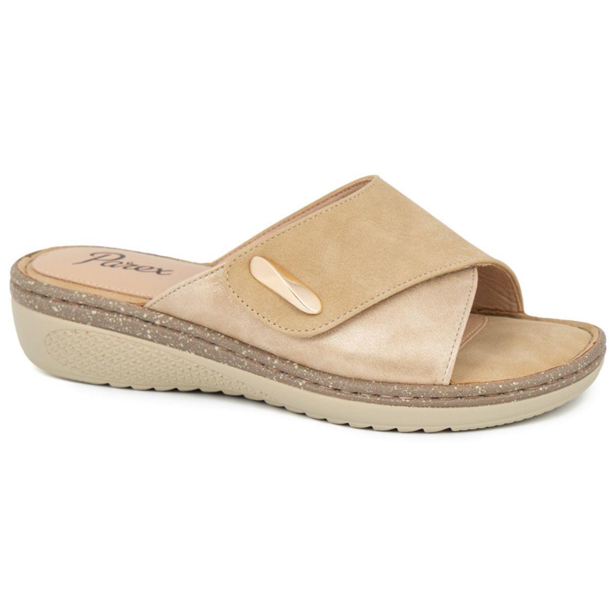 Γυναικείες ανατομικές παντόφλες της εταιρείας PAREX με αυτοκόλλητο που προσαρμόζεται σε όλα τα πόδια και με τεχνολογία CLOUDFORM στο πατάκι, για να έχετε μαλακό πάτημα. Το πατάκι είναι γνήσιο δέρμα, το εξωτερικό μέρος και η φόδρα είναι συνθετικό δέρμα άριστης ποιότητας. Η σόλα είναι ελαφριά και ελαστική. Το ύψος της είναι 4 εκ. πίσω και 2 εκ. μπροστά. Μπορούν να φορεθούν είτε μέσα στο σπίτι είτε έξω.