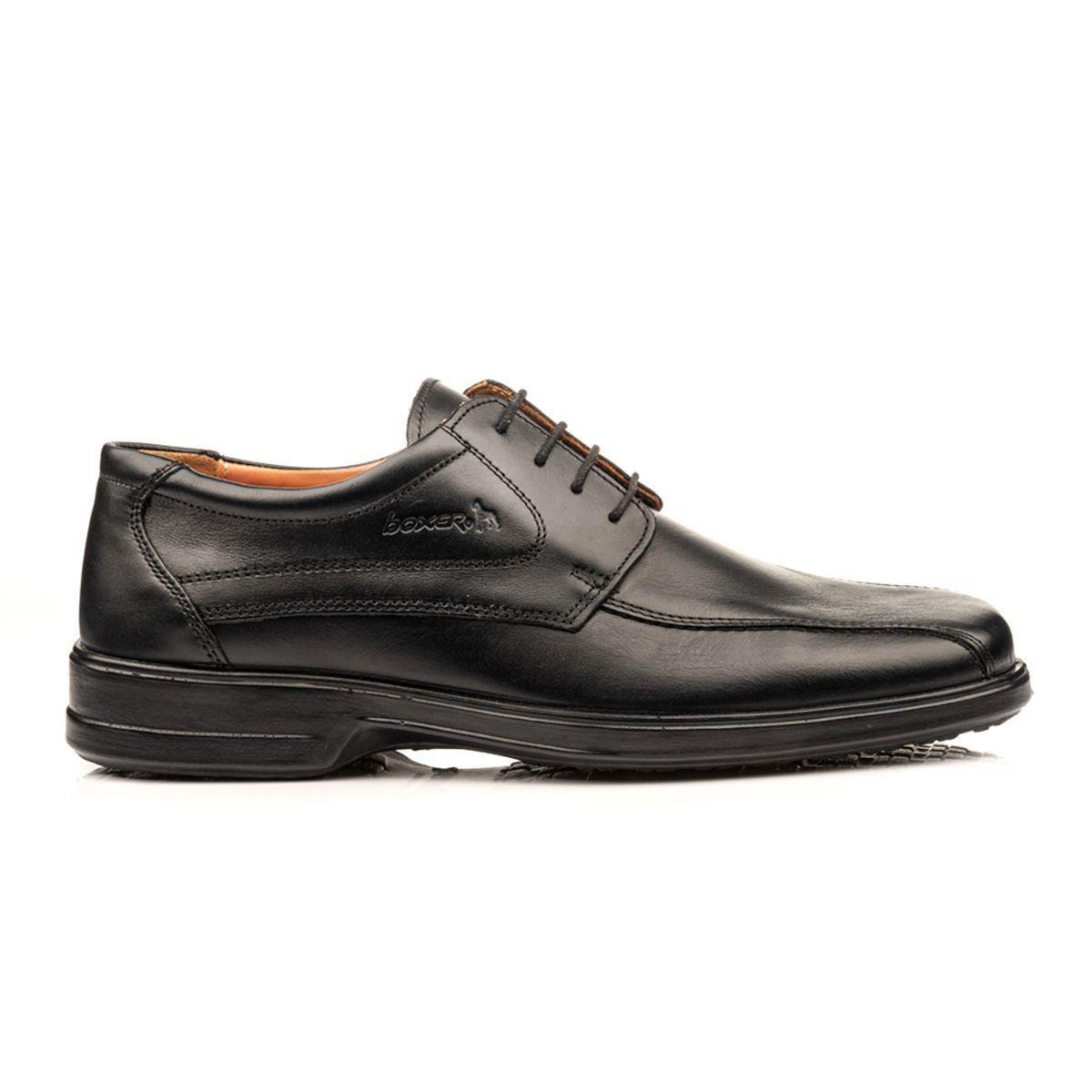 Ανδρικά παπούτσια της εταιρείας BOXER, ελληνικής κατασκευής, με κορδόνια. Είναι κατασκευασμένα εξολοκλήρου από γνήσιο δέρμα. Διαθέτουν αποσπόμενο, ανατομικό, αφρώδη πάτο, τεχνολογία air comfort injection, που σας εξασφαλίζει άνετο βάδισμα. Η σόλα είναι ελαφριά και αντιολισθητική. Ιδανικά για να φορεθούν σε καθημερινές, αλλά και επίσημες περιστάσεις.