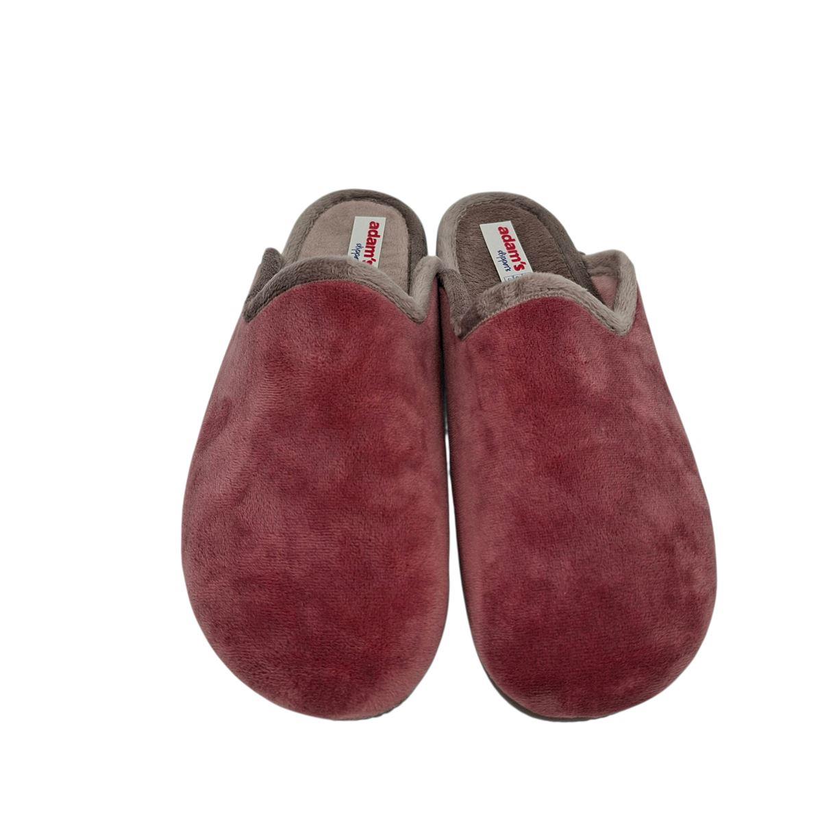 Γυναικείες παντόφλες σπιτιού της εταιρείας ADAM'S ισπανικής κατασκευής. Είναι κατασκευασμένες από μαλακά, βελουτέ υφάσματα που δεν μυρίζουν. Έχουν ανατομικό, μαλακό πέλμα, με σόλα ελαφριά και αντιολισθητική ύψους 2,5 εκ. πίσω και 1 εκ. μπροστά. Με λιτό σχέδιο και γήινα χρώματα, είναι ιδανικές για τον χειμώνα προσφέροντας άνεση και ζεστασιά.