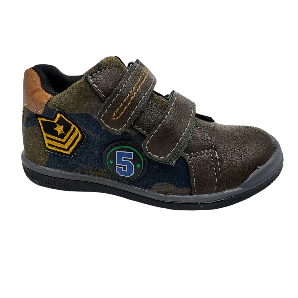 Μποτάκια για μικρά αγόρια της εταιρείας STREETERS σε δύο χρώματα, μπλε και λαδί, με δύο αυτοκόλλητα για εύκολη εφαρμογή. Είναι κατασκευασμένα εξωτερικά από μαλακό τεχνόδερμα άριστης ποιότητας, ενώ εσωτερικά η φόδρα είναι υφασμάτινη και το πατάκι γνήσιο δέρμα. Ο εσωτερικός πάτος είναι ανατομικός. Η σόλα είναι ελαφριά και αντιολισθητική. Ένα casual μποτάκι που φοριέται όλες τις ώρες.