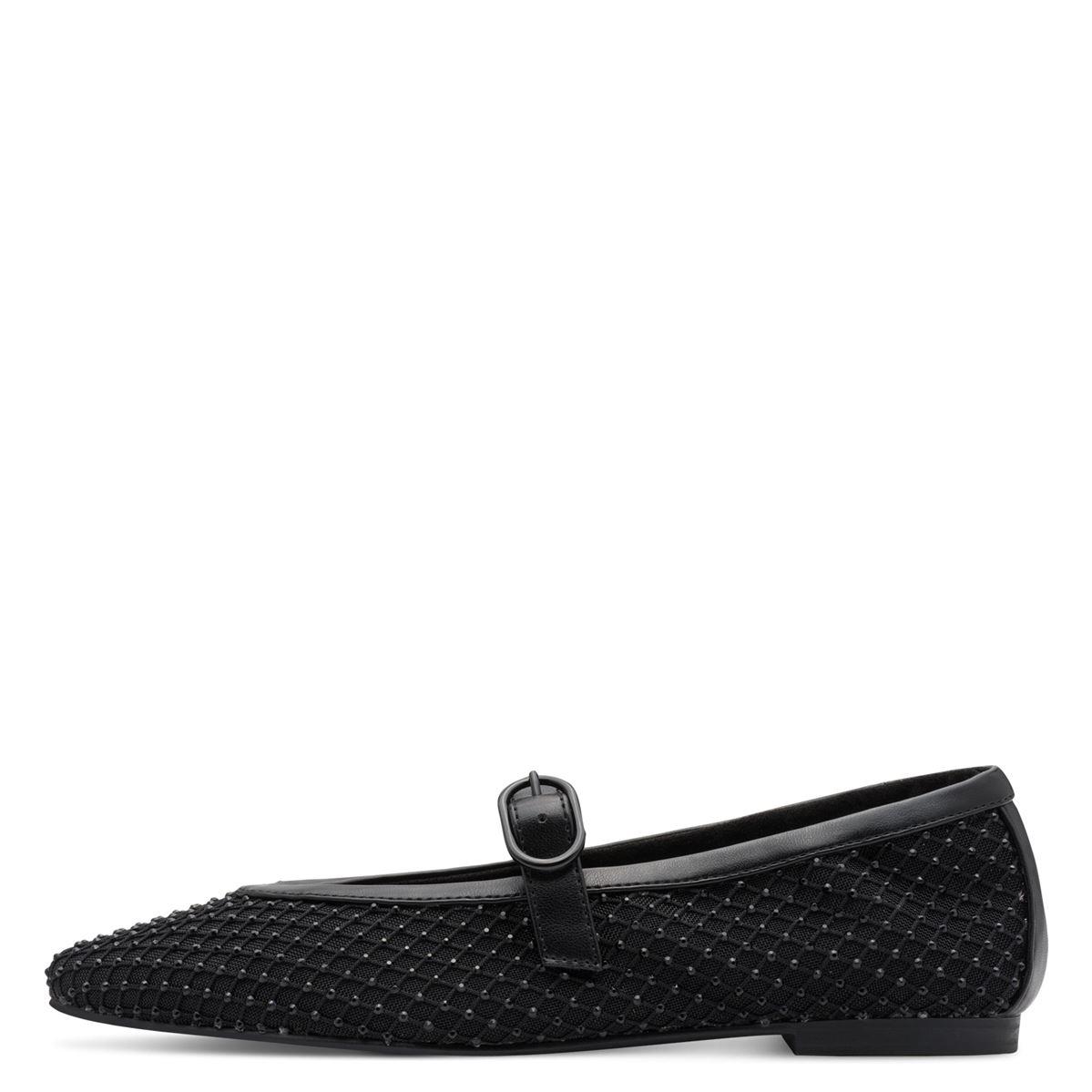 Γυναικείες μπαλαρίνες της εταιρείας MARCO TOZZI με λουράκι και τοκαδάκι με λαστιχάκι εσωτερικά, μοντέρνες και άνετες, που ταιριάζουν με πολλά outfits και μπορούν να φορεθούν καθημερινά, αλλά και σε πιο επίσημες περιστάσεις. Είναι κατασκευασμένες εξωτερικά από ύφασμα, το οποίο έχει στρασάκια στο ίδιο χρώμα και μαλακό, οικολογικό δέρμα άριστης ποιότητας, ενώ εσωτερικά η φόδρα είναι υφασμάτινη και το πατάκι οικολογικό δέρμα. Στο εσωτερικό πέλμα υπάρχει αφρώδης επένδυση, τεχνολογία feel me, για μαλακό πάτημα. Το τακούνι είναι σταθερό, με ύψος 1 εκ., η σόλα είναι ελαστική και αντιολισθητική, εξασφαλίζοντάς σας άνετο βάδισμα.