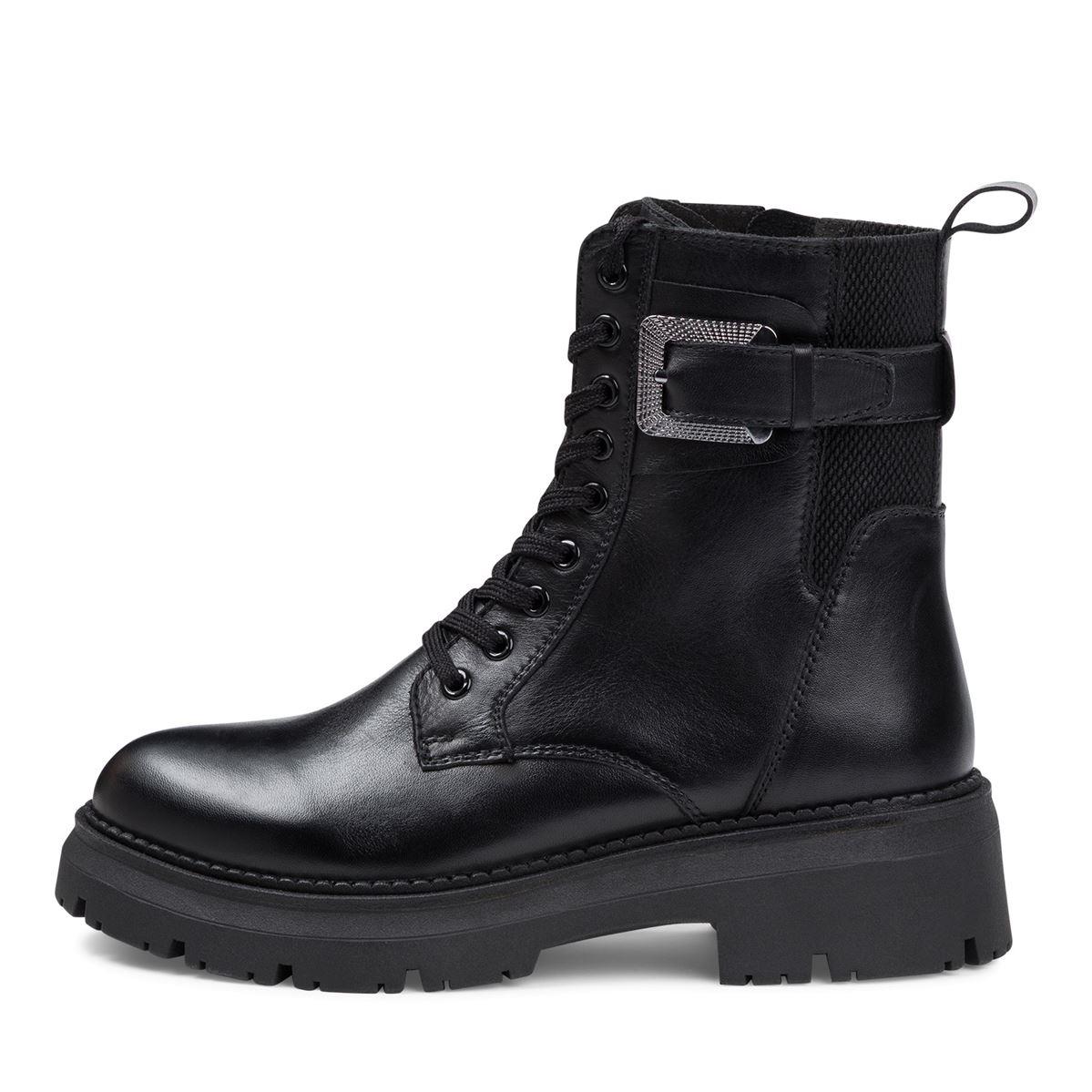 Γυναικεία αρβυλάκια της εταιρείας MARCO TOZZI με κορδόνια και φερμουάρ στο πλάι για εύκολη και γρήγορη εφαρμογή. Εξωτερικά είναι κατασκευασμένα από μαλακό, γνήσιο δέρμα, ενώ εσωτερικά το πατάκι και η φόδρα είναι γούνινα. Ο εσωτερικός πάτος είναι ανατομικός, πολύ μαλακός, χάρη στην αφρώδη επένδυση, τεχνολογίας feel me. Η σόλα είναι ελαστική και αντιολισθητική. Το ύψος της είναι 5 εκ. πίσω και 3 εκ. μπροστά. Μοντέρνο στυλ, ποιότητα κατασκευής, άνεση, είναι τα στοιχεία που θα σας κάνουν να τα προτιμήσετε.