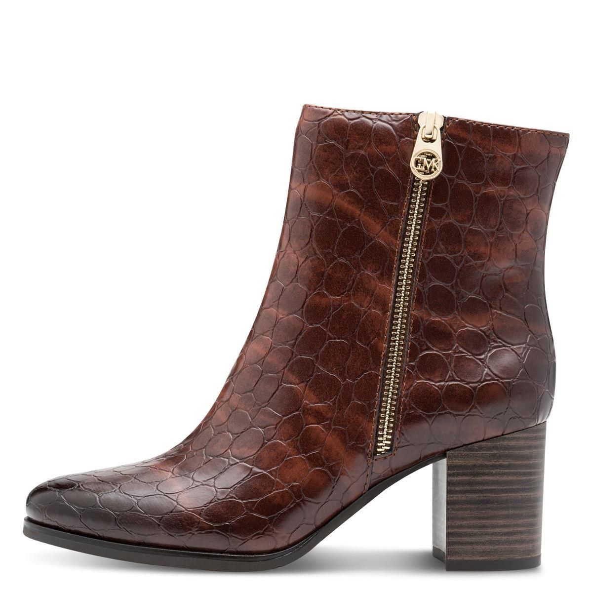 Γυναικεία μποτάκια της εταιρείας MARCO TOZZI με λειτουργικό φερμουάρ εσωτερικά στο πλάι για εύκολη και γρήγορη εφαρμογή. Το εξωτερικό φερμουάρ είναι διακοσμητικό. Εξωτερικά είναι κατασκευασμένα από μαλακό, οικολογικό δέρμα κροκό, ενώ εσωτερικά το πατάκι και η φόδρα είναι γούνινα. Ο εσωτερικός πάτος είναι ανατομικός, πολύ μαλακός, χάρη στην αφρώδη επένδυση, τεχνολογίας feel me. Η σόλα είναι ελαστική και αντιολισθητική. Το ύψος του τακουνιού είναι 6,5 εκατοστά. Σικάτα και μοντέρνα, ποιότητα κατασκευής, άνεση, είναι τα στοιχεία που θα σας κάνουν να τα προτιμήσετε.