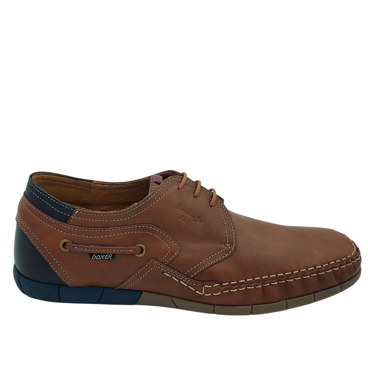 Ανδρικά παπούτσια της εταιρείας BOXER, ελληνικής κατασκευής, με κορδόνια. Είναι κατασκευασμένα εξολοκλήρου από γνήσιο δέρμα. Διαθέτουν ανατομικό, αφρώδη πάτο, τεχνολογία air comfort injection, που σας εξασφαλίζει άνετο βάδισμα. Η σόλα είναι ελαφριά και αντιολισθητική. Ιδανικά για να φορεθούν σε καθημερινές, αλλά και επίσημες περιστάσεις.