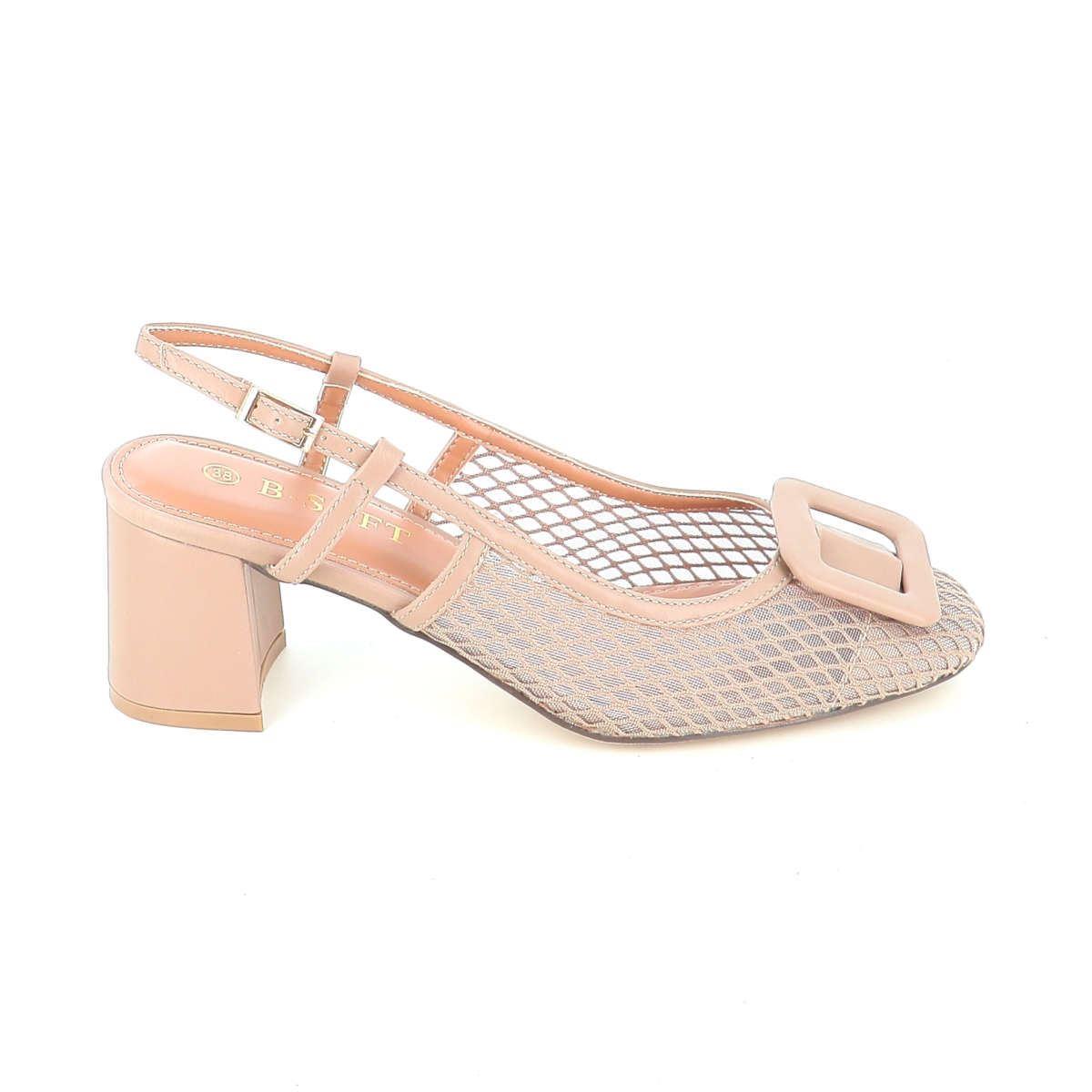 Γυναικείες εξώφτερνες γόβες της εταιρείας B-SOFT που κλείνουν με τοκαδάκι, το οποίο διαθέτει λαστιχάκι για εύκολη και γρήγορη εφαρμογή. Είναι κατασκευασμένες εξωτερικά από διαφανές ύφασμα και συνθετικό δέρμα άριστης ποιότητας, ενώ εσωτερικά η φόδρα είναι υφασμάτινη και το πατάκι συνθετικό δέρμα. Στο εσωτερικό πέλμα υπάρχει αφρώδης επένδυση για μαλακό πάτημα. Το τακούνι είναι σταθερό, με ύψος 6,5 εκ., η σόλα είναι ελαστική και αντιολισθητική, εξασφαλίζοντάς σας άνετο βάδισμα. Με μοντέρνα τόκα στο ίδιο χρώμα και ωραία, σικάτη ύφανση, αυτές οι γόβες θα αναδείξουν την εμφάνισή σας σε μια βραδινή ή επίσημη περίσταση.