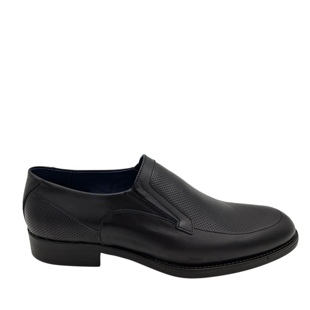 Ανδρικά σκαρπίνια χωρίς κορδόνια της εταιρείας ANTONIO ελληνικής κατασκευής. Είναι εξωτερικά και εσωτερικά κατασκευασμένο από γνήσιο δέρμα. Το εξαιρετικό σχέδιο που συνδυάζει λείο και ανάγλυφο τρυπητό υλικό στο δέρμα θα τα κάνουν να ξεχωρίσουν. Έχουν μαλακό πάτημα χάρη στην εσωτερική αφρώδη επένδυση και την ελαστική και αντιολισθητική σόλα. Διαθέτουν λαστιχάκια στο κουντεπιέ, για να εφαρμόζουν τέλεια σε όλα τα πόδια. Σικάτα και άνετα σκαρπίνια για τις επίσημες εμφανίσεις σας.