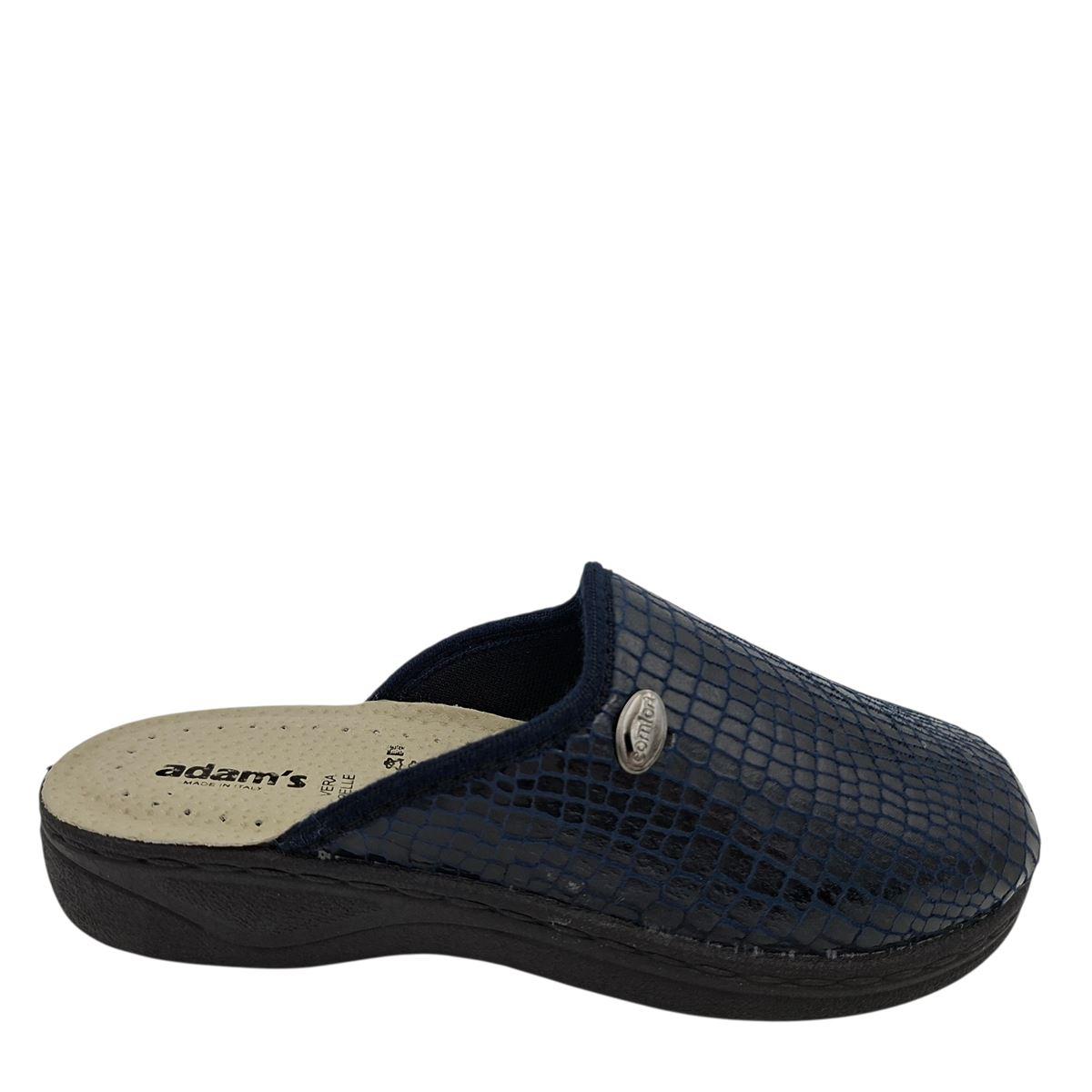 Γυναικείες ανατομικές παντόφλες σπιτιού της εταιρείας ADAM'S, που κατασκευάζονται στην Ιταλία. Είναι ιδανικές για πόδια με κότσια και κάλους, γιατί το υλικό κατασκευής τους είναι ελαστικό συνθετικό δέρμα και ύφασμα. Το πατάκι είναι γνήσιο δέρμα με ανατομία και αφρώδη επένδυση, για να έχετε μαλακό πάτημα.Η σόλα είναι ελαφριά, αντιολισθητική και ελαστική. Το ύψος της είναι 3,5 εκ. πίσω και 2 εκ. μπροστά.