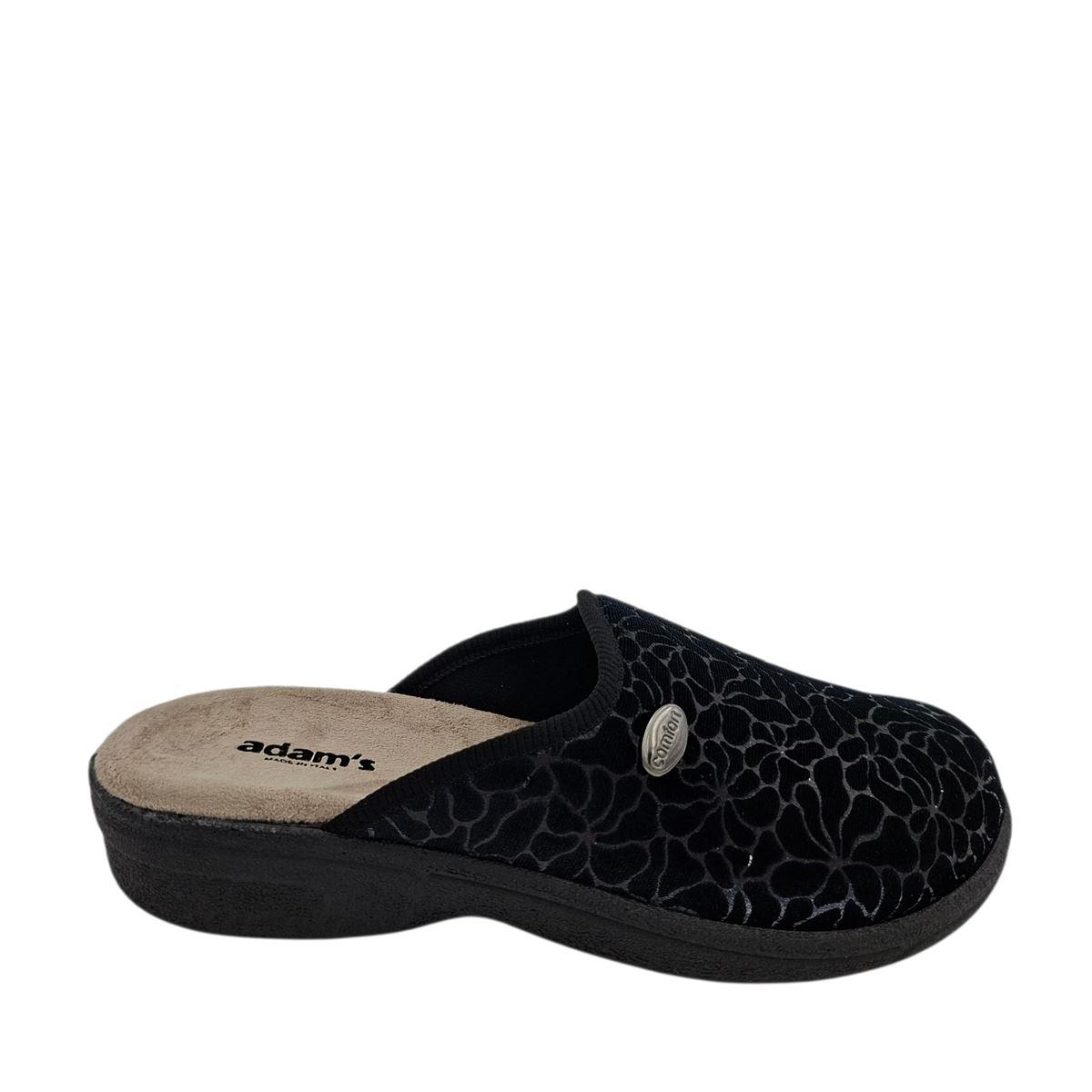 Γυναικείες ανατομικές παντόφλες σπιτιού της εταιρείας ADAM'S, που κατασκευάζονται στην Ιταλία. Είναι ιδανικές για πόδια με κότσια και κάλους, γιατί το υλικό κατασκευής τους είναι ελαστικό ύφασμα. Το πατάκι είναι υφασμάτινο. με ανατομία και αφρώδη επένδυση, για να έχετε μαλακό πάτημα.Η σόλα είναι ελαφριά, αντιολισθητική και ελαστική. Το ύψος της είναι 3,5 εκ. πίσω και 2 εκ. μπροστά.