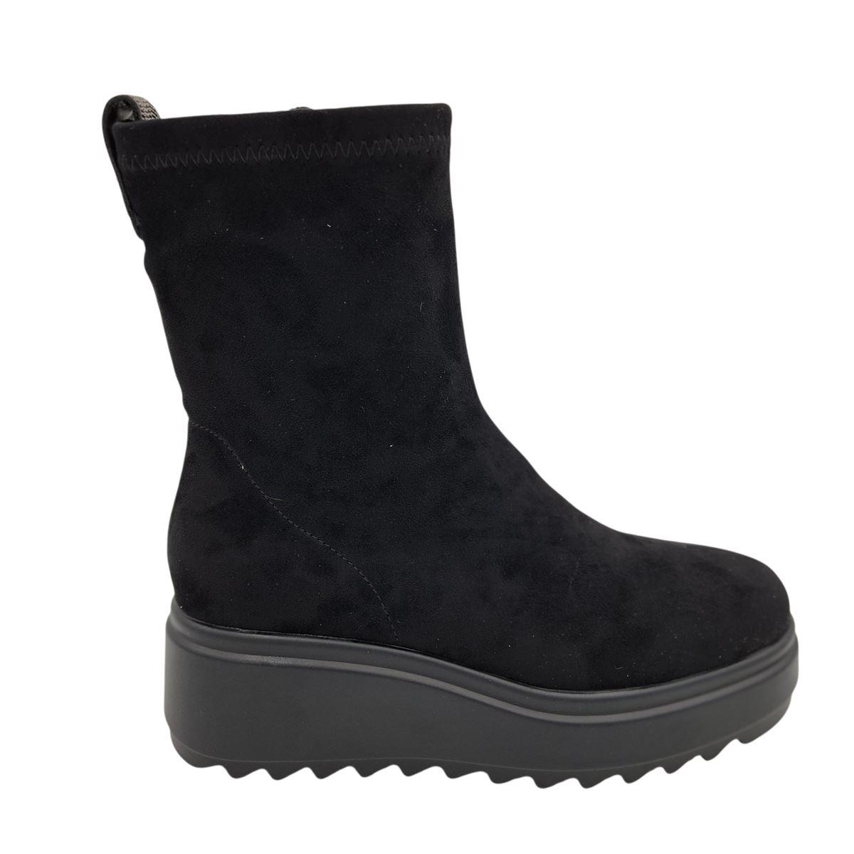 Γυναικεία μποτάκια πλατφόρμες της ισπανικής εταιρείας MTNG κατασκευασμένα από ελαστικό ύφασμα, που αγκαλιάζουν τα πόδια σαν κάλτσα. Ο εσωτερικός πάτος είναι ανατομικός, πολύ μαλακός, χάρη στην αφρώδη επένδυση. Η σόλα είναι ελαφριά, αντιολισθητική και με ύψος 6 εκ. πίσω και 4 εκ. μπροστά. Μοντέρνα και άνετα μποτάκια ιδανικά για all day εμφανίσεις.