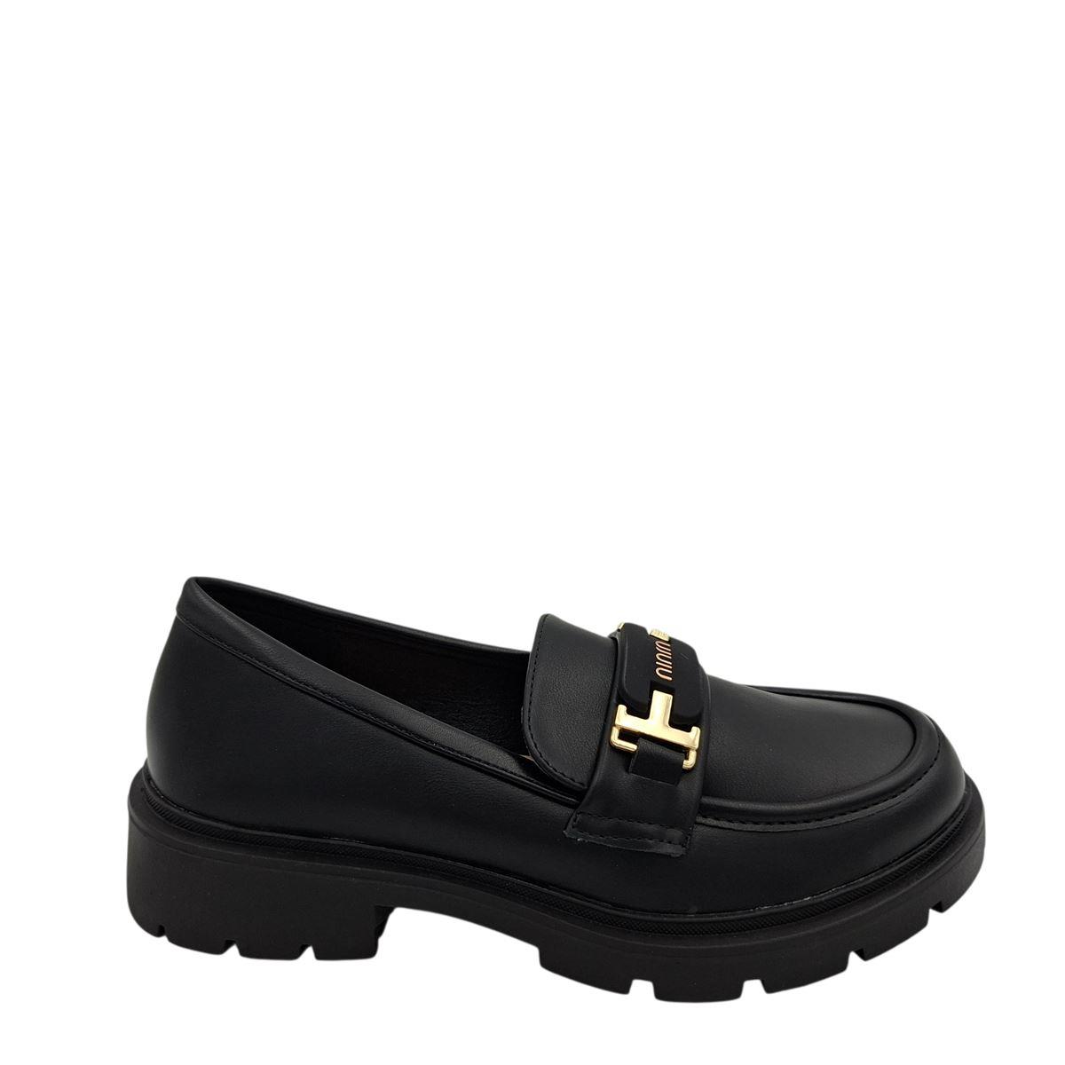 Γυναικεία loafers κατασκευασμένα εξολοκλήρου από μαλακό, συνθετικό δέρμα άριστης ποιότητας. Διαθέτουν πατάκι με αφρώδη επένδυση για μαλακό βάδισμα. Η σόλα είναι ελαστική, ελαφριά και αντιολισθητική με ύψος 4 εκ. πίσω και 2 εκ. μπροστά. Με κομψή αγκράφα στο επάνω μέρος αυτά τα loafers είναι ιδανικά για πολύωρη χρήση και θα σας χαρίσουν άνεση και στυλ στις εμφανίσεις σας.