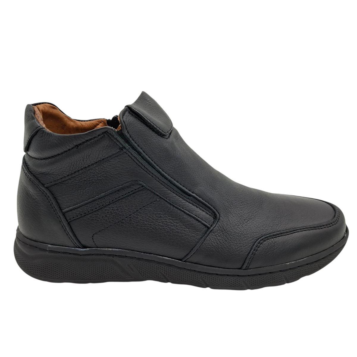 Ανδρικά μποτάκια ελληνικής κατασκευής, της εταιρείας ANTONIO με φερμουάρ στο πλάι για εύκολη και γρήγορη εφαρμογή. Είναι κατασκευασμένα εξολοκλήρου από γνήσιο δέρμα. Ο εσωτερικός πάτος είναι ανατομικός και πολύ μαλακός χάρη στην επένδυση από αφρώδες υλικό. Η σόλα είναι ελαφριά, αντιολισθητική και ραφτή, για να αντέχει ακόμη περισσότερο. Το ιδανικό μποτάκι για να το φοράτε από το πρωί έως το βράδυ. Έχουν άνετη φόρμα, συνήθως χρειάζεται ένα νούμερο μικρότερο από τα αθλητικά.