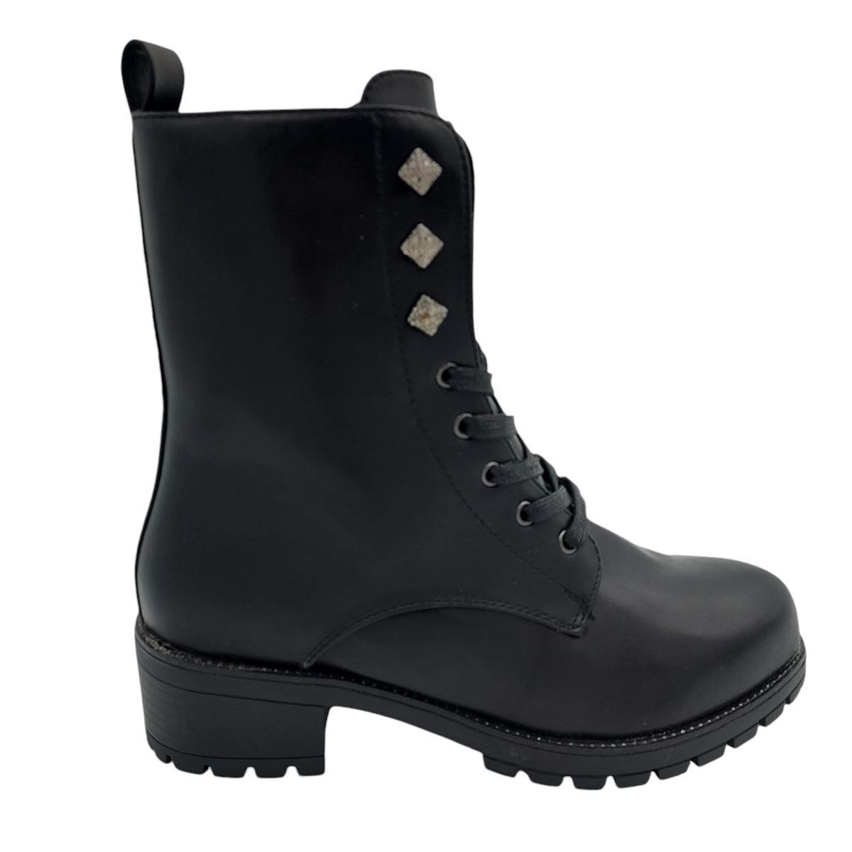 Γυναικεία αρβυλάκια της ισπανικής εταιρείας MARAMARE με κορδόνια και λειτουργικό φερμουάρ στο πλάι για εύκολη και γρήγορη εφαρμογή. Εξωτερικά είναι κατασκευασμένα από μαλακό, συνθετικό δέρμα, ενώ εσωτερικά το πατάκι και η φόδρα είναι υφασμάτινα. Ο εσωτερικός πάτος είναι ανατομικός, πολύ μαλακός, χάρη στην αφρώδη επένδυση. Η σόλα είναι ελαστική, αντιολισθητική και έχει ύψος 5 εκ. πίσω και 2 εκ. μπροστά. Μοντέρνο στυλ, με εντυπωσιακά στρασένια διακοσμητικά στη κορδονιέρα, ποιότητα κατασκευής, άνεση, είναι τα στοιχεία που θα σας κάνουν να τα προτιμήσετε.