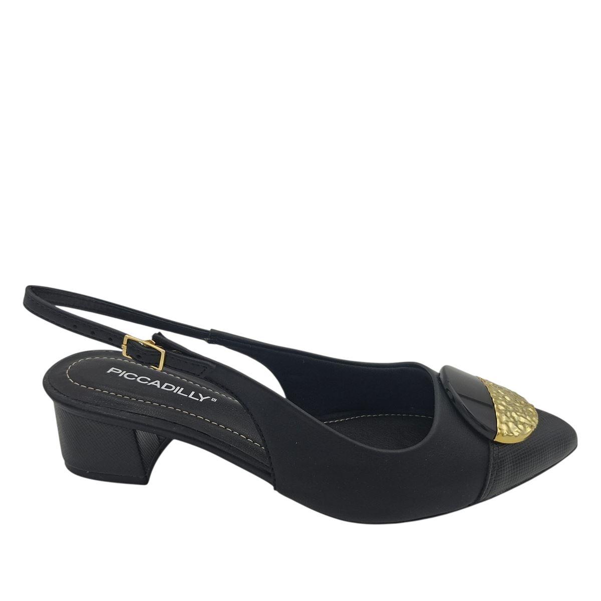 Γυναικείες ανατομικές εξώφτερνες γόβες της βραζιλιάνικης εταιρείας PICCADILLY κατασκευασμένες εξωτερικά από πολύ μαλακό, οικολογικό δέρμα ματ, σταμπαριστό στη μύτη και στο τακούνι, ενώ εσωτερικά η φόδρα είναι υφασμάτινη και το πατάκι οικολογικό δέρμα. Διαθέτουν αφρώδες ανατομικό πέλμα για να έχετε την απόλυτη άνεση. Η σόλα είναι αντιολισθητική και ελαστική. Το τακούνι έχει ύψος 4 εκ. Με σικάτη διακοσμητική αγκράφα αυτά τα γοβάκια μπορούν να φορεθούν ιδανικά τις βραδινές ώρες και με πολλά outfits.