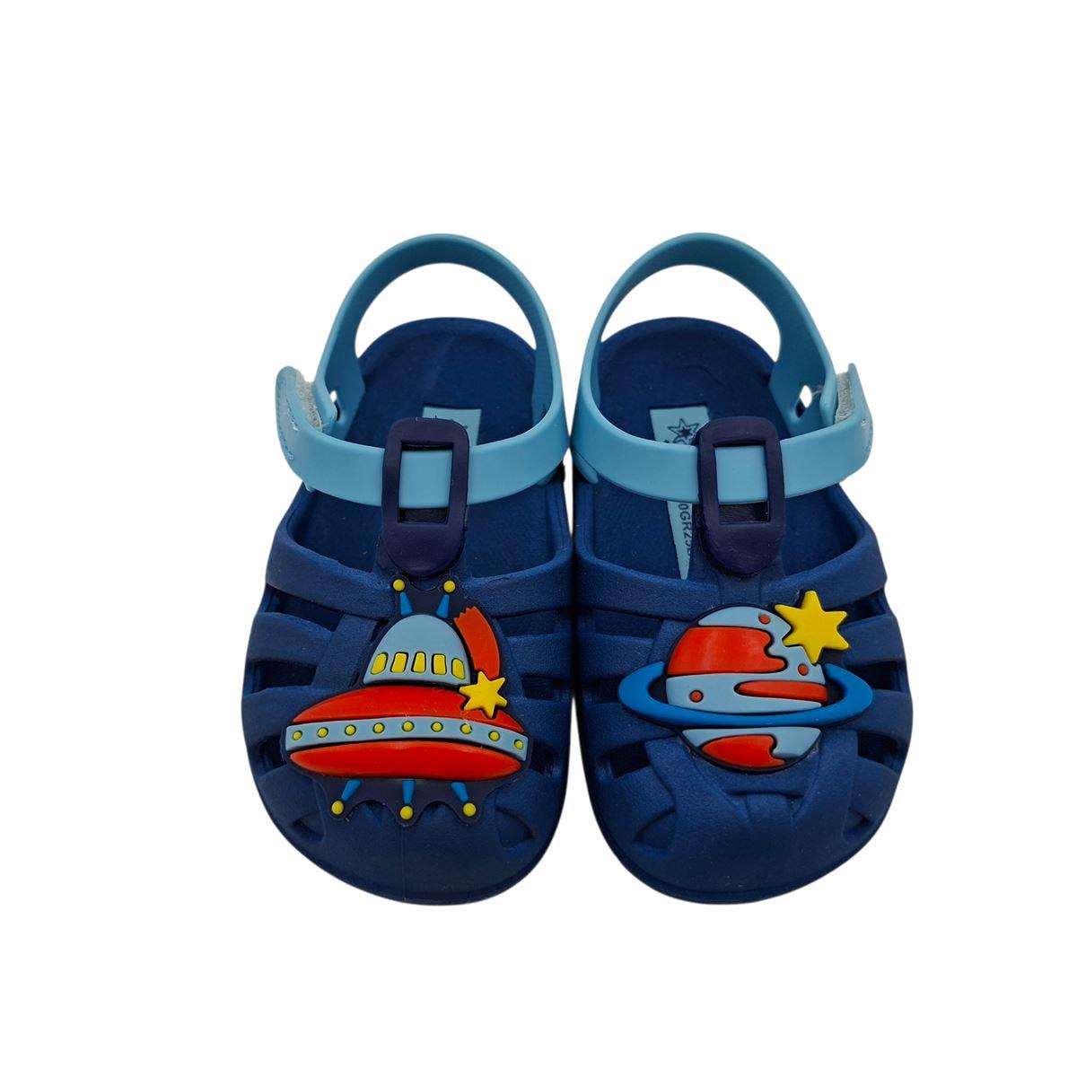 Πέδιλα για αγόρια της βραζιλιάνικης εταιρείας IPANEMA, που κλείνουν με αυτοκόλλητο για εύκολη και γρήγορη εφαρμογή. Είναι κατασκευασμένα από υποαλλεργικό υλικό rubber, το οποίο είναι ελαστικό, ελαφρύ και αντιολισθητικό. Έχουν ανατομικό πέλμα για τη σωστή στήριξη του σώματος. Με όμορφο, χαριτωμένο σχέδιο διαστημόπλοιο και πλανήτης μπορούν να φορεθούν στην παραλία, στο σπίτι και στον παιδικό σταθμό σαν παντοφλάκια, αλλά και στις καθημερινές σας βόλτες.