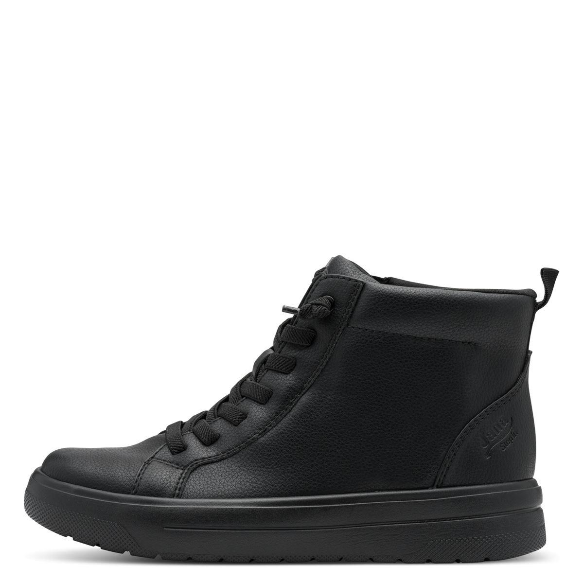 Γυναικεία μποτάκια της εταιρείας JANA τεχνολογία step in με λαστιχωτά κορδόνια και λάστιχο εσωτερικά στο πλάι για εύκολη και γρήγορη εφαρμογή. Εξωτερικά είναι κατασκευασμένα από μαλακό, οικολογικό δέρμα, ενώ εσωτερικά το πατάκι και η φόδρα είναι υφασμάτινα. Ο εσωτερικός πάτος είναι ανατομικός, πολύ μαλακός, χάρη στην αφρώδη επένδυση, τεχνολογίας soft foam. Η σόλα είναι ελαφριά, ευλύγιστη για να βαδίζετε χωρίς να κουράζεστε.Το ύψος της είναι 4 εκ. πίσω και 3 εκ. μπροστά. Ιδανικά μποτάκια για πολύωρη καθημερινή χρήση.