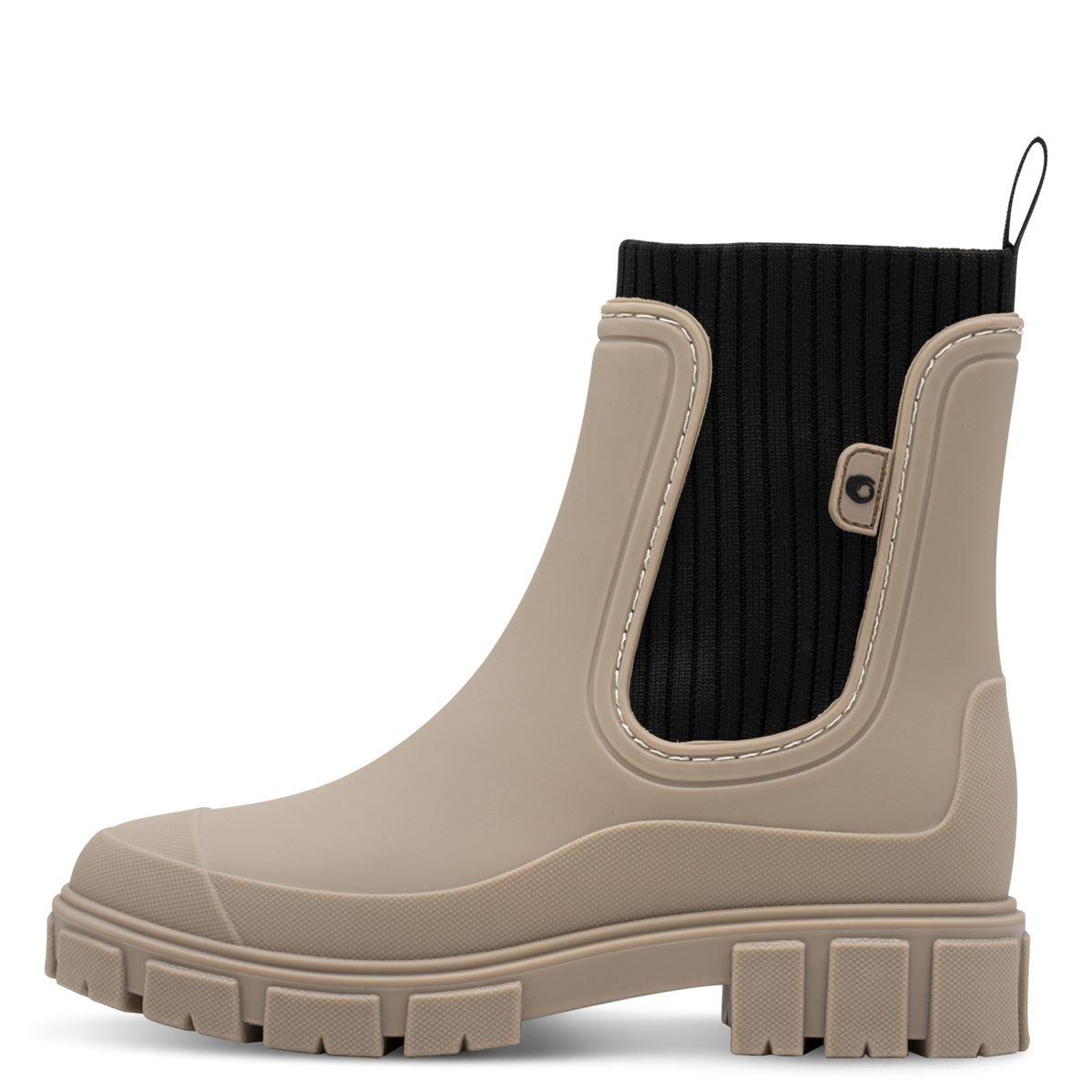 Γυναικεία μποτάκια τύπου γαλότσας της εταιρείας JANA soft line κατασκευασμένα από μαλακό, οικολογικό rubber, που τα καθιστά αδιάβροχα, καθώς επίσης και η σόλα είναι από το ίδιο υλικό και ενώνεται με το πάνω μέρος με την τεχνολογία injection. Στα πλαϊνά έχουν λάστιχα, που δείχνει σαν κάλτσα, για να εφαρμόζουν εύκολα και γρήγορα. Εσωτερικά έχουν μια απαλή επίστρωση υφάσματος και στο πατάκι έχουν λεπτή γουνίτσα. Η σόλα έχει ύψος 4 εκ. πίσω και 2,5 εκ. μπροστά. Μοντέρνες και άνετες γαλότσες, που ταιράζουν με πολλά outfits και φοριούνται όχι μόνο τις βροχερές μέρες.