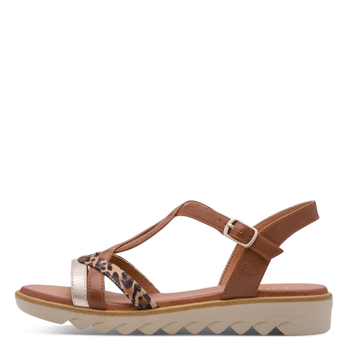 Γυναικεία πέδιλα της εταιρείας JANA που αγκαλιάζουν πολύ καλά το κουντεπιέ και τα δάχτυλα χάρη στο ωραίο πλέξιμο που κάνουν τα λουράκια, για να έχετε σταθερό βάδισμα. Είναι κατασκευασμένα εξωτερικά από μαλακό, οικολογικό δέρμα άριστης ποιότητας σε χρώμα ταμπά και με λεπτομέρειες animal print και μεταλλικό πλατινέ, ενώ εσωτερικά το πατάκι και η φόδρα είναι οικολογικό δέρμα. Κλείνουν στον αστράγαλο με τοκαδάκι, το οποίο έχει και λαστιχάκι εσωτερικά, όπως λαστιχάκι υπάρχει και στο εσωτερικό του αστραγάλου. Διαθέτουν ανατομικό, μαλακό, πέλμα για ξεκούραστο βάδισμα. Η σόλα είναι ελαφριά, ελαστική και αντιολισθητική. Το ύψος της είναι 3 εκ. πίσω και 2 εκ. μπροστά. Ιδανικά πέδιλα για πολύωρη χρήση στη δουλειά, στις βόλτες, αλλά και στις διακοπές σας.
