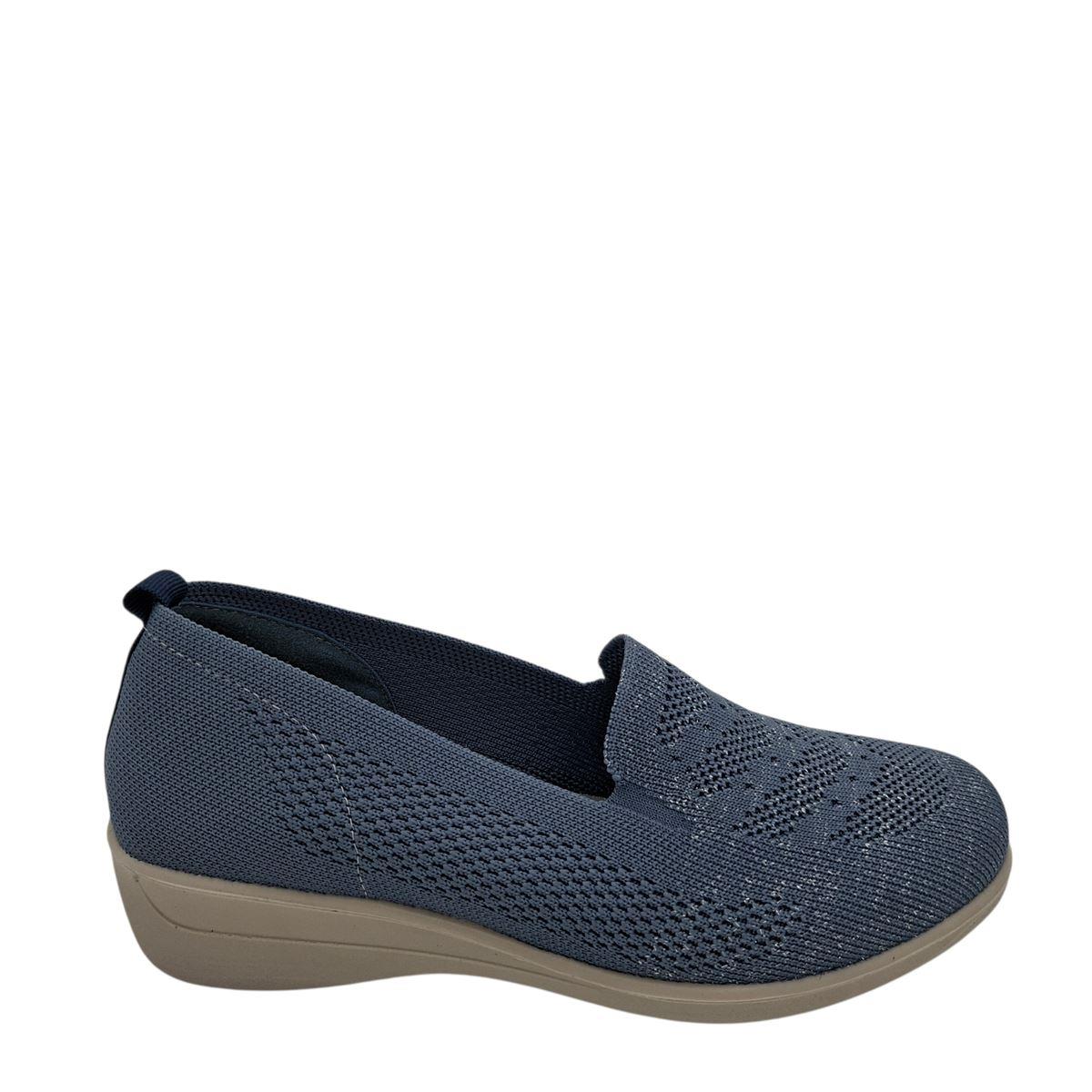 Γυναικεία μοκασίνια της ιταλικής εταιρείας SOFT SPACE κατασκευασμένα εξωτερικά από ελαστικό ύφασμα σαν κάλτσα με λεπτομέρειες μεταλλιζέ, ενώ και εσωτερικά είναι υφασμάτινα, με ανατομική, αφρώδη επένδυση για μαλακό βάδισμα. Η σόλα είναι ελαφριά, ελαστική και αντιολισθητική με ύψος 4 εκ. πίσω και 1,5 εκ. μπροστά. Μπορείτε να τα φοράτε όλη μέρα χωρίς να σας κουράσουν. Διαχρονικό σχέδιο που ταιριάζει με πολλά outfits.