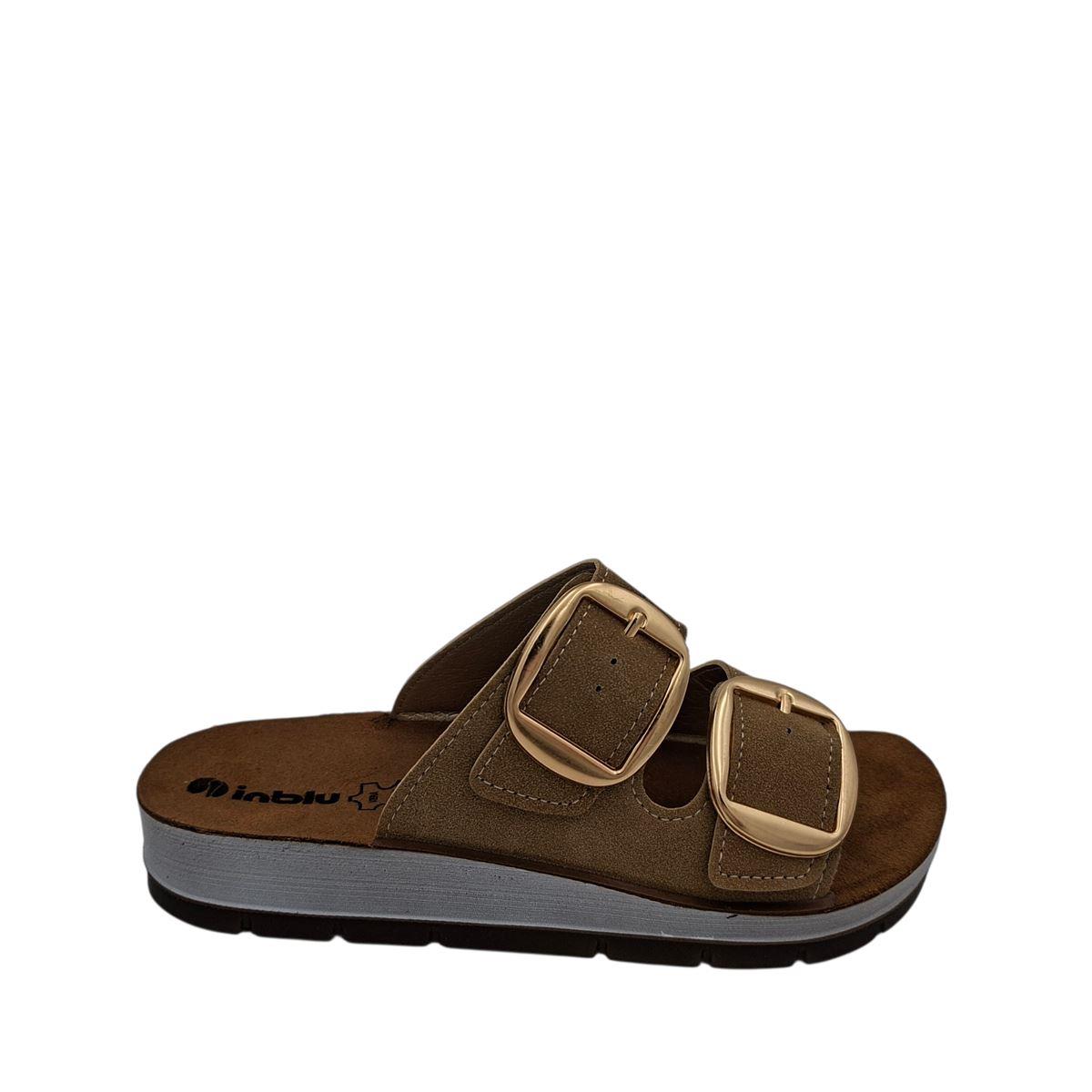 Γυναικείες ανατομικές παντόφλες της ιταλικής εταιρείας INBLU με δύο λουράκια που κλείνουν με τόκες και που προσαρμόζονται σε όλους τους τύπους ποδιών. Είναι κατασκευασμένες εξωτερικά από μαλακό, συνθετικό δέρμα άριστης ποιότητας, ενώ εσωτερικά η φόδρα είναι συνθετικό δέρμα και το πατάκι γνήσιο δέρμα. Διαθέτουν αφρώδη εσωτερική επένδυση για ξεκούραστο βάδισμα. Η σόλα είναι ελαφριά και ελαστική. Το ύψος της είναι 3 εκ. πίσω και 2 εκ. μπροστά. Μπορούν να φορεθούν είτε μέσα στο σπίτι είτε έξω.