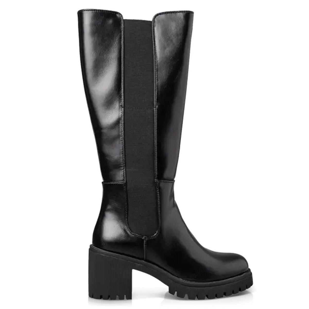 Γυναικείες μπότες της εταιρείας ENVIE με φερμουάρ και λάστιχο στα πλαϊνά, για να εφαρμόζουν εύκολα σε όλα τα πόδια. Είναι κατασκευασμένες εξωτερικά από μαλακό, συνθετικό δέρμα άριστης ποιότητας, ενώ εσωτερικά έχουν ύφασμα στη φόδρα και στο πατάκι έχουν συνθετικό δέρμα. Η σόλα είναι ελαστική, αντιολισθητική, με ύψος 8 εκ. πίσω και 3 εκ. μπροστά. Το ύψος της γάμπας είναι 35 εκ. (από την φτέρνα και στο νούμερο 37). Διαθέτουν ανατομικό, αφρώδες πέλμα για άνετο βάδισμα. Ταιριάζουν με πολλά outfits και φοριούνται από το πρωί έως το βράδυ.