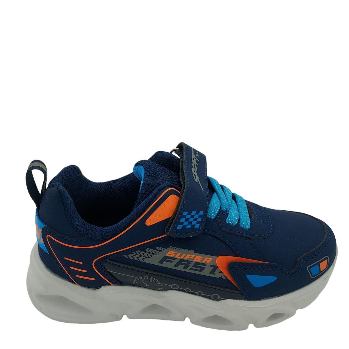 Αθλητικά για αγόρια της ιταλικής εταιρείας GIARDINO D'ORO με λαστιχωτά κορδόνια και αυτοκόλλητο για εύκολη και γρήγορη εφαρμογή. Είναι κατασκευασμένα εξωτερικά από μαλακό συνθετικό δέρμα, ενώ εσωτερικά είναι υφασμάτινα. Η σόλα είναι ανατομική, ελαφριά και ελαστική, ιδανική για την κάθε δραστηριότητα του παιδιού. Η σόλα έχει μηχανισμό με πολύχρωμα φωτάκια, με το οποίο θα ξετρελαθούν τα παιδιά.