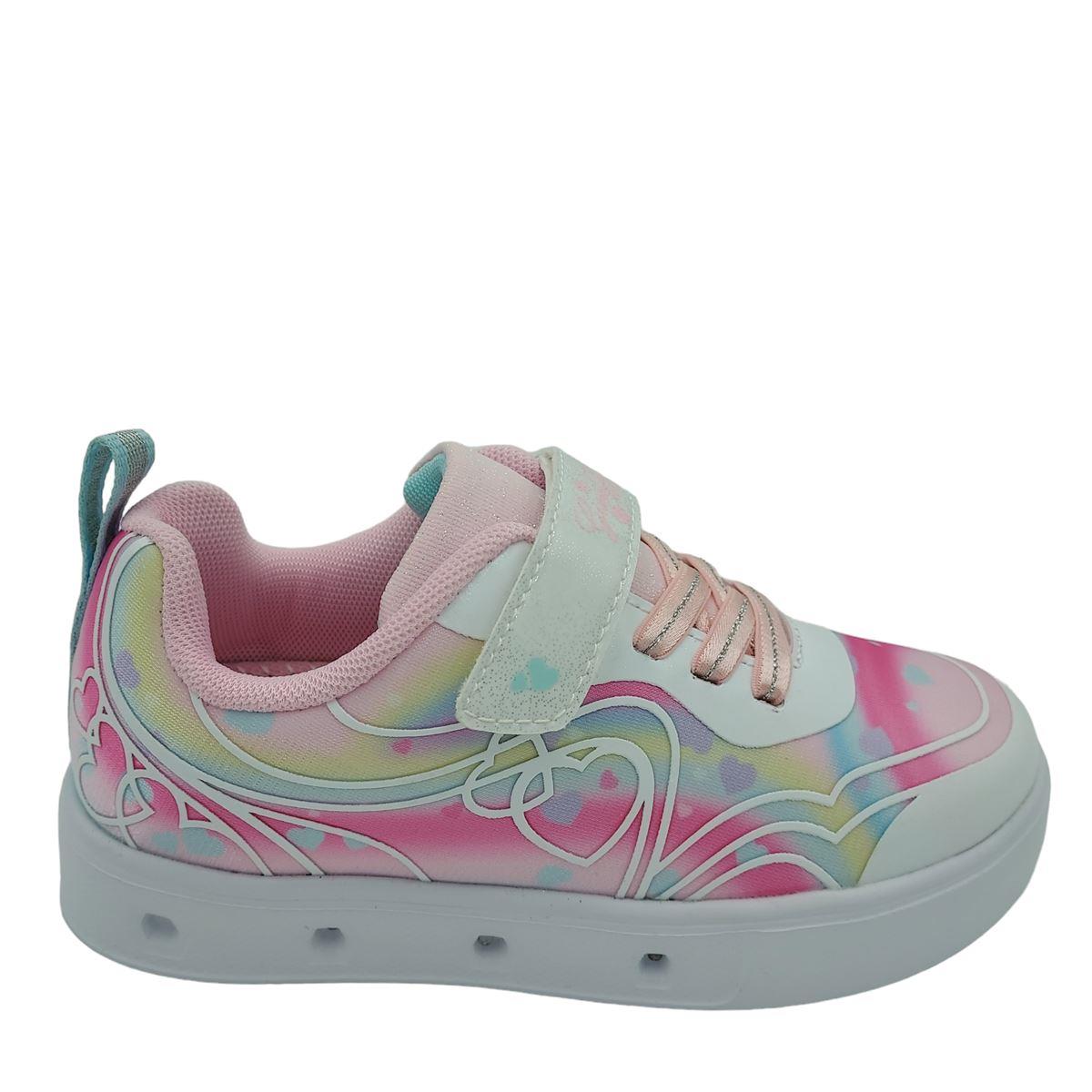 Αθλητικά για κορίτσια της ιταλικής εταιρείας GIARDINO D'ORO με λαστιχωτά κορδόνια και αυτοκόλλητο για εύκολη και γρήγορη εφαρμογή. Είναι κατασκευασμένα εξωτερικά από μαλακό συνθετικό δέρμα και ύφασμα, ενώ εσωτερικά είναι υφασμάτινα. Η σόλα είναι ανατομική, ελαφριά και ελαστική, ιδανική για την κάθε δραστηριότητα του παιδιού. Η σόλα έχει μηχανισμό με πολύχρωμα φωτάκια, με το οποίο θα ξετρελαθούν τα παιδιά.