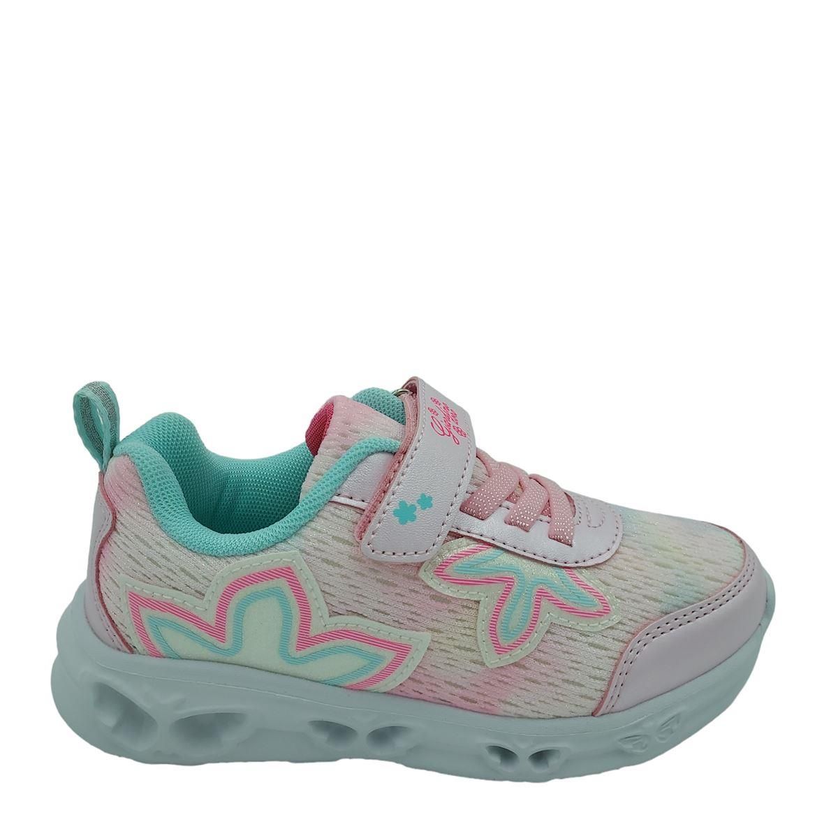 Αθλητικά για κορίτσια της ιταλικής εταιρείας GIARDINO D'ORO με λαστιχωτά κορδόνια και αυτοκόλλητο για εύκολη και γρήγορη εφαρμογή. Είναι κατασκευασμένα εξωτερικά από μαλακό συνθετικό δέρμα και ύφασμα, ενώ εσωτερικά είναι υφασμάτινα. Η σόλα είναι ανατομική, ελαφριά και ελαστική, ιδανική για την κάθε δραστηριότητα του παιδιού. Η σόλα έχει μηχανισμό με πολύχρωμα φωτάκια, με το οποίο θα ξετρελαθούν τα παιδιά.