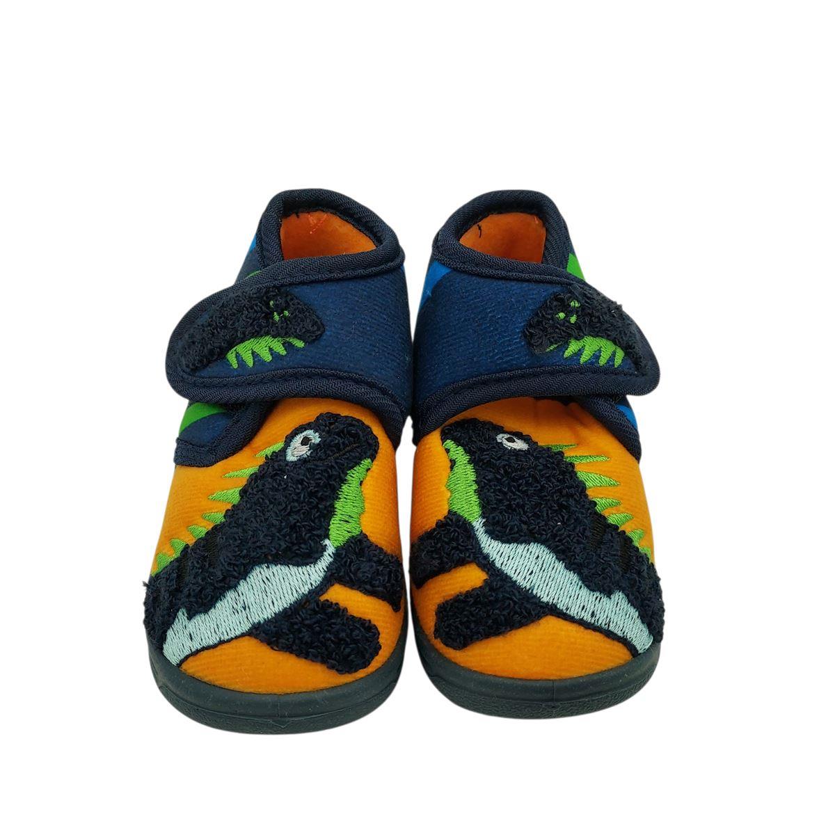 Παιδικά be-be παντοφλάκια για αγόρια με πρωτότυπο σχέδιο ιγκουάνα της ιταλικής εταιρείας GIARDINO D'ORO με αυτοκόλλητο, για να μπορούν να τα βάζουν και να τα βγάζουν μόνα τους και να εφαρμόζουν τέλεια σε όλα τα ποδαράκια. Έχουν ελαφριά, ελαστική και αντιολισθητική σόλα, που κάνει μικρή ανατομία στο πλάι και είναι κατασκευασμένα από μαλακό ύφασμα.
