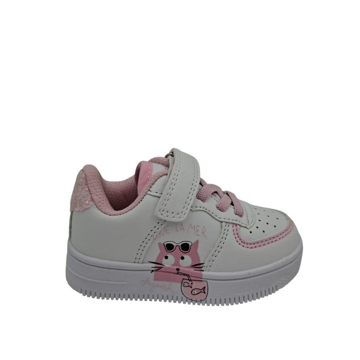 Sneakers για κορίτσια της ιταλικής εταιρείας GIARDINO D'ORO με αυτοκόλλητο και λαστιχωτά κορδόνια για εύκολη και γρήγορη εφαρμογή. Είναι κατασκευασμένα εξωτερικά από μαλακό, συνθετικό δέρμα, ενώ εσωτερικά από ύφασμα. Η σόλα είναι ανατομική, ελαφριά και ελαστική, ιδανική για την κάθε δραστηριότητα του παιδιού. Χαριτωμένο σχέδιο γατούλα, ψαράκια και glitter στην φτέρνα, αυτά τα sneakers θα φορεθούν με όλα τα outfits των μικρών μας κοριτσιών.