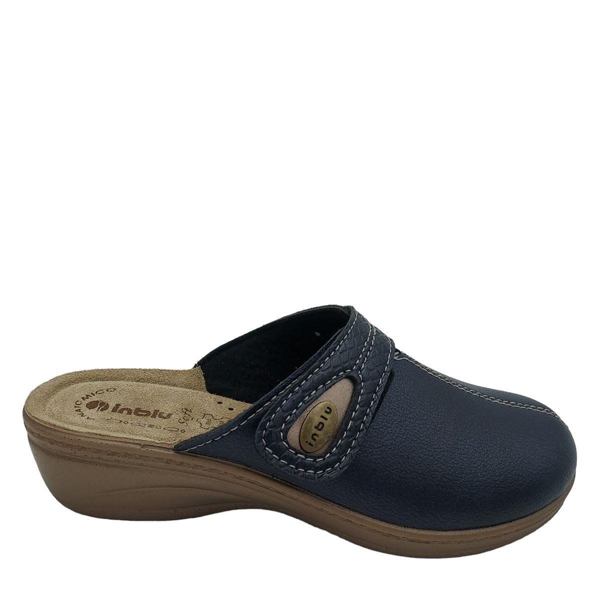 Γυναικείες παντόφλες σπιτιού της ιταλικής εταιρείας INBLU με ανατομική, αντιολισθητική σόλα ύψους 4,5 εκ. πίσω και 2 εκ. μπροστά. Διαθέτουν αυτοκόλλητο στο κουντεπιέ, για να προσαρμόζονται σε όλα τα πόδια. Εξωτερικά είναι κατασκευασμένες από μαλακό συνθετικό δέρμα άριστης ποιότητας, ενώ εσωτερικά η φόδρα είναι υφασμάτινη και το πατάκι γνήσιο δέρμα. Διαθέτουν ανατομικό, αφρώδες πέλμα, που σας εξασφαλίζει ξεκούραστο βάδισμα.Ένα κλασσικό, διαχρονικό σχέδιο που συνδυάζει την άνεση και την ποιότητα.