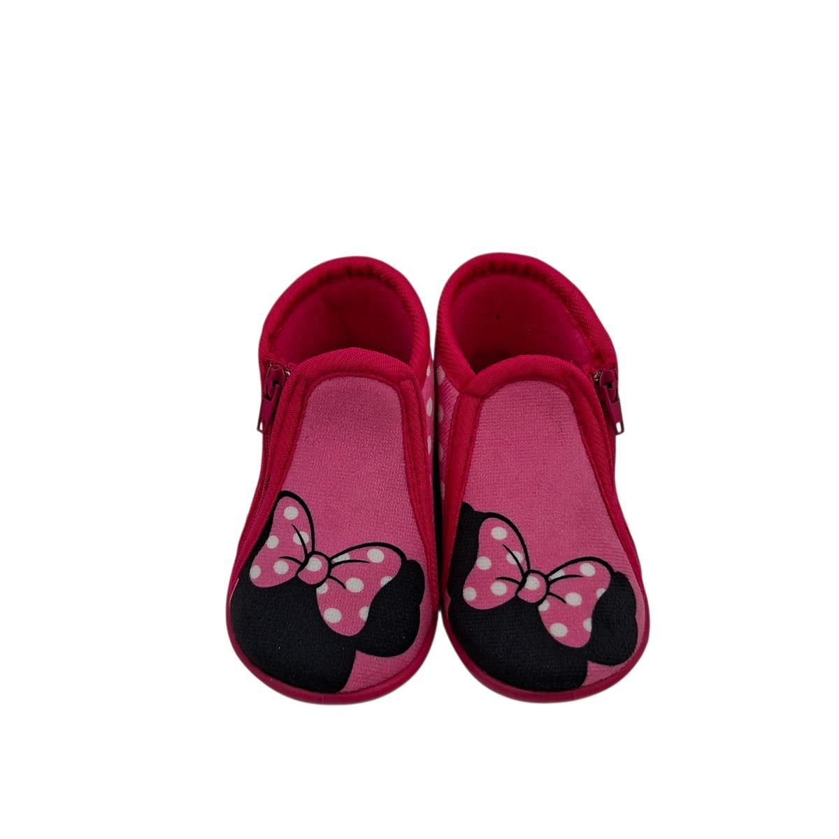Παιδικά be-be παντοφλάκια για κορίτσια με σχέδιο την ηρωίδα Minnie της εταιρείας SMART KIDS με φερμουάρ. Έχουν ελαφριά, ελαστική και αντιολισθητική σόλα, που κάνει μικρή ανατομία στο πλάι και είναι κατασκευασμένα από μαλακό ύφασμα και το πατάκι είναι γνήσιο δέρμα.