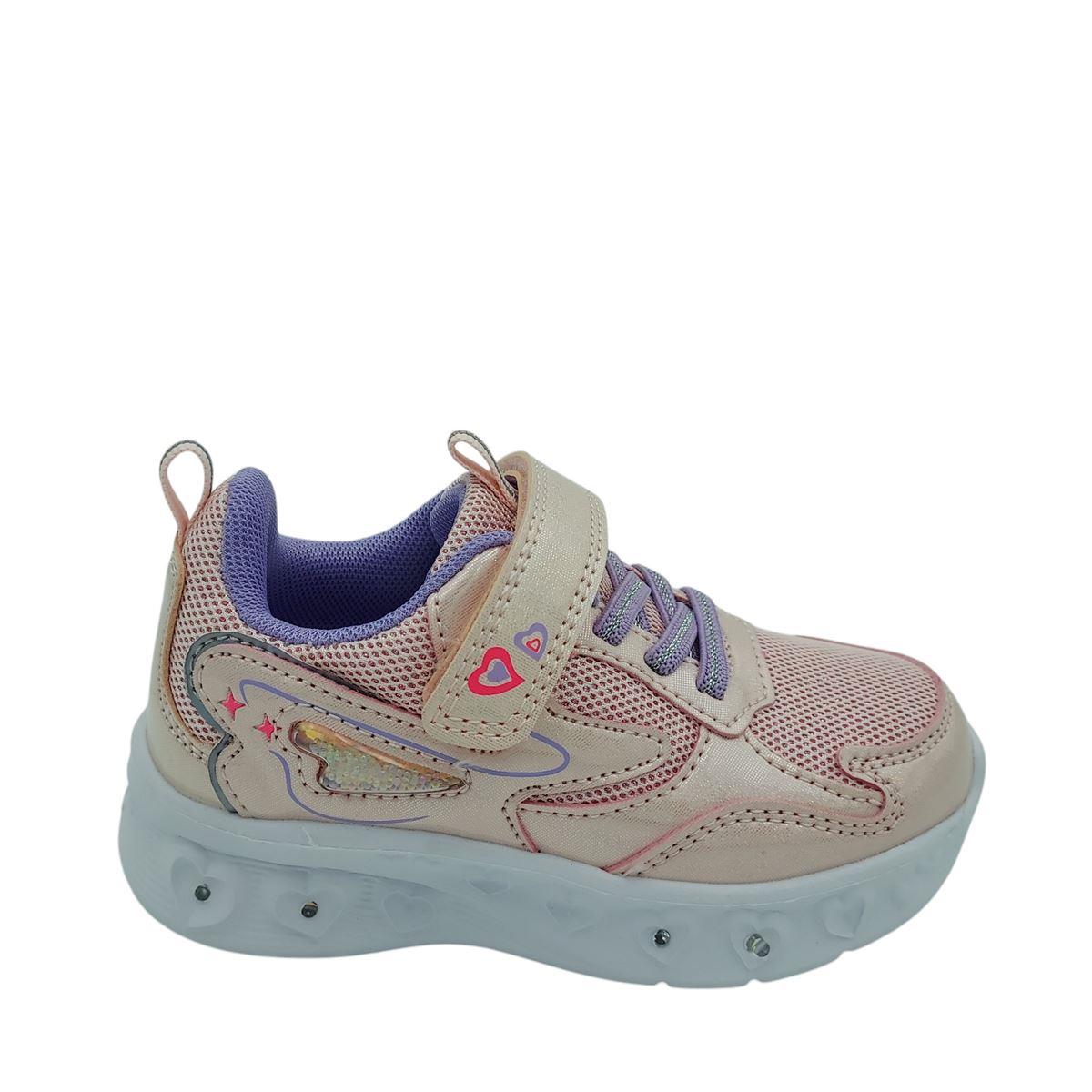 Αθλητικά για κορίτσια της ιταλικής εταιρείας BACIO & BACIO με λαστιχωτά κορδόνια και αυτοκόλλητο για εύκολη και γρήγορη εφαρμογή. Είναι κατασκευασμένα εξωτερικά από μαλακό συνθετικό δέρμα και ύφασμα, ενώ εσωτερικά είναι υφασμάτινα. Η σόλα είναι ανατομική, ελαφριά και ελαστική, ιδανική για την κάθε δραστηριότητα του παιδιού. Η σόλα έχει μηχανισμό με πολύχρωμα φωτάκια, με το οποίο θα ξετρελαθούν τα παιδιά.